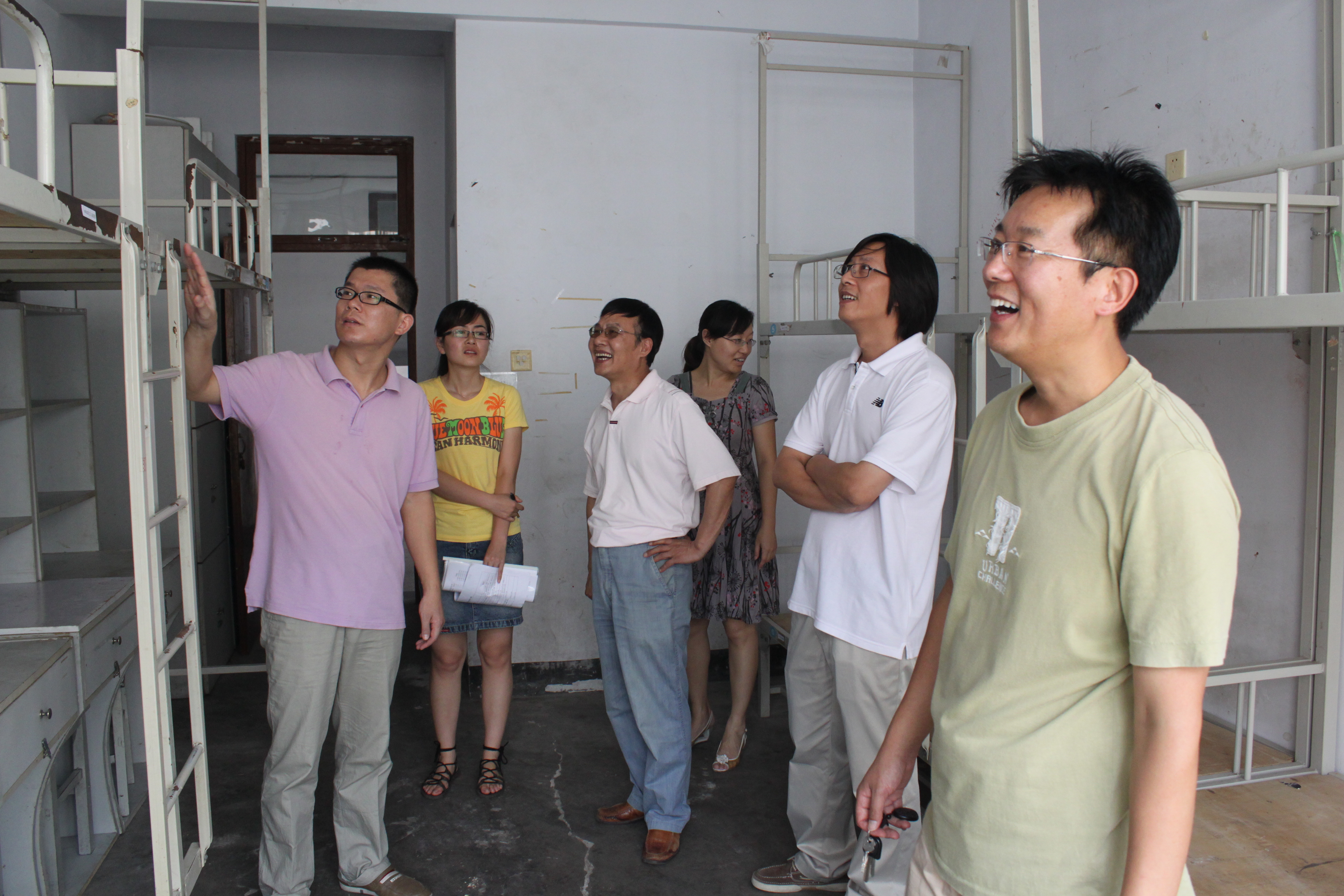 党政领导张鸣、阎瑜、曲国先、魏琳及分团委全体辅导员对2011级40余个新生宿舍进行走访视察,对宿舍安全、卫生等多方面问题进行了查看,并给后勤处提出建议。