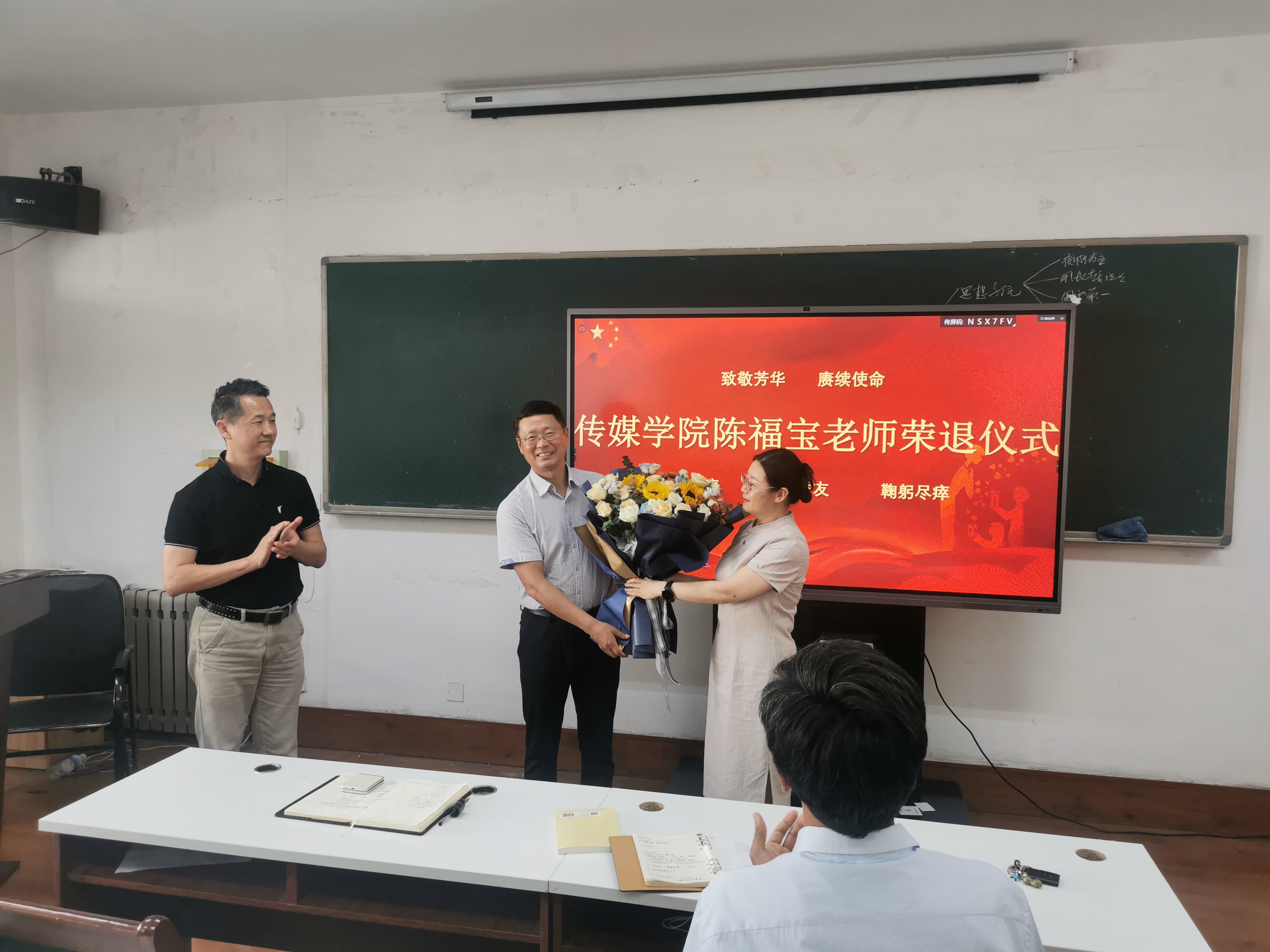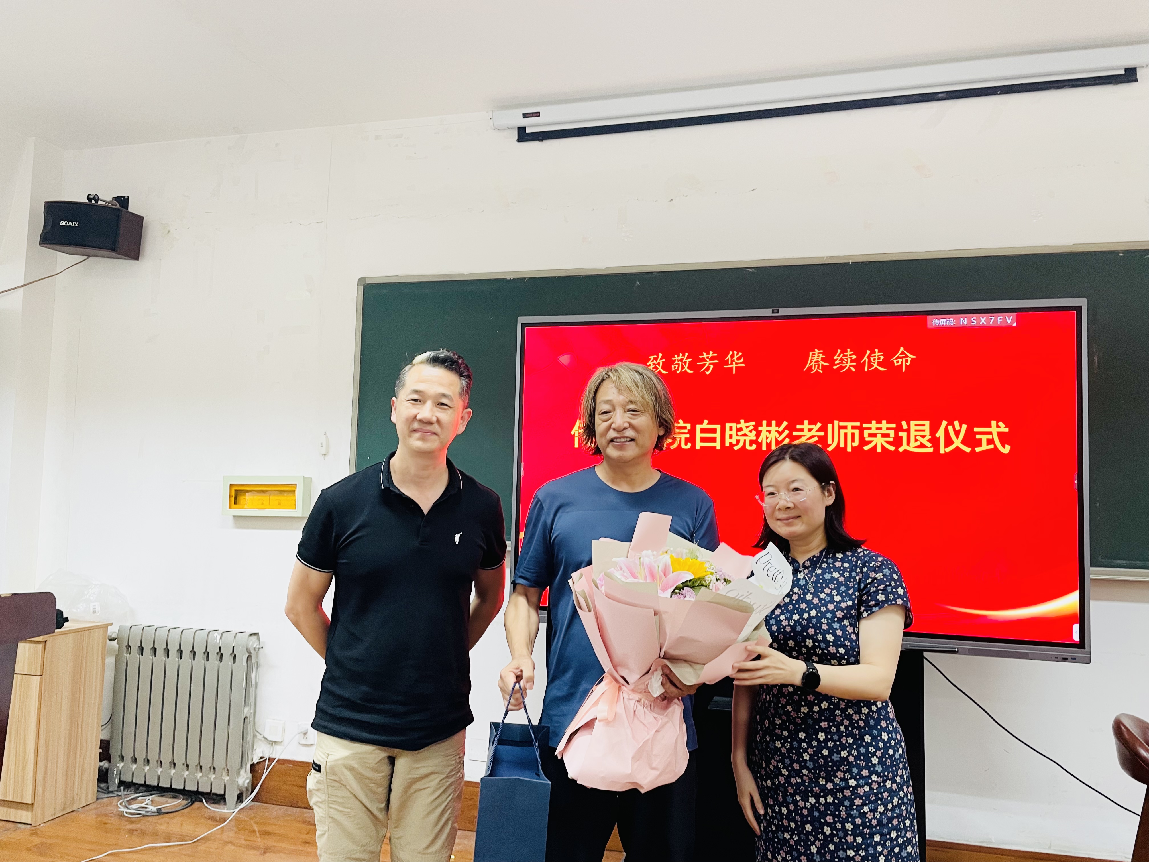 党总支书记刘志国,执行院长杨建华发表致辞,教师代表为退休教师送上鲜花和祝福。