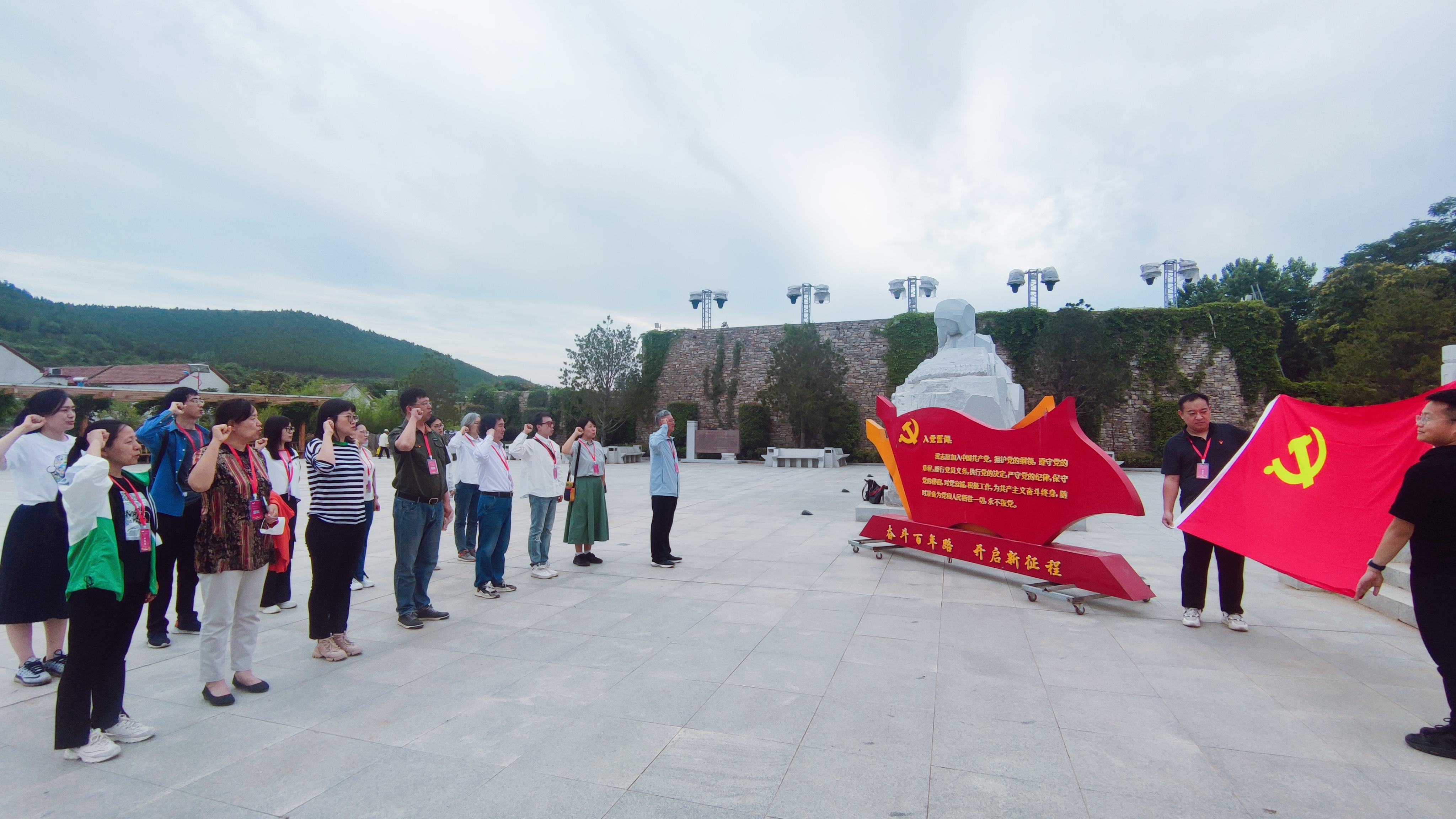 党总支来到沂南马牧池红嫂纪念馆,参观沂蒙山区抗战时期的古村风貌,在光影交织、雕塑和实物相结合的熏陶中感受沂蒙儿女无私无畏支持革命、献身革命的博大情怀和浓浓的军民鱼水情。“蒙山高,沂水长,好红嫂,永难忘”。如今,无私奉献、艰苦奋斗的“红嫂精神”历久弥新,是砥砺我们不忘初心、牢记使命的不竭精神动力。全体党员整装肃立,面向党旗庄严宣誓,重温入党誓词。铿锵的誓词,让人热血沸腾,更加坚定了全体党员的理想信念和党性认识。