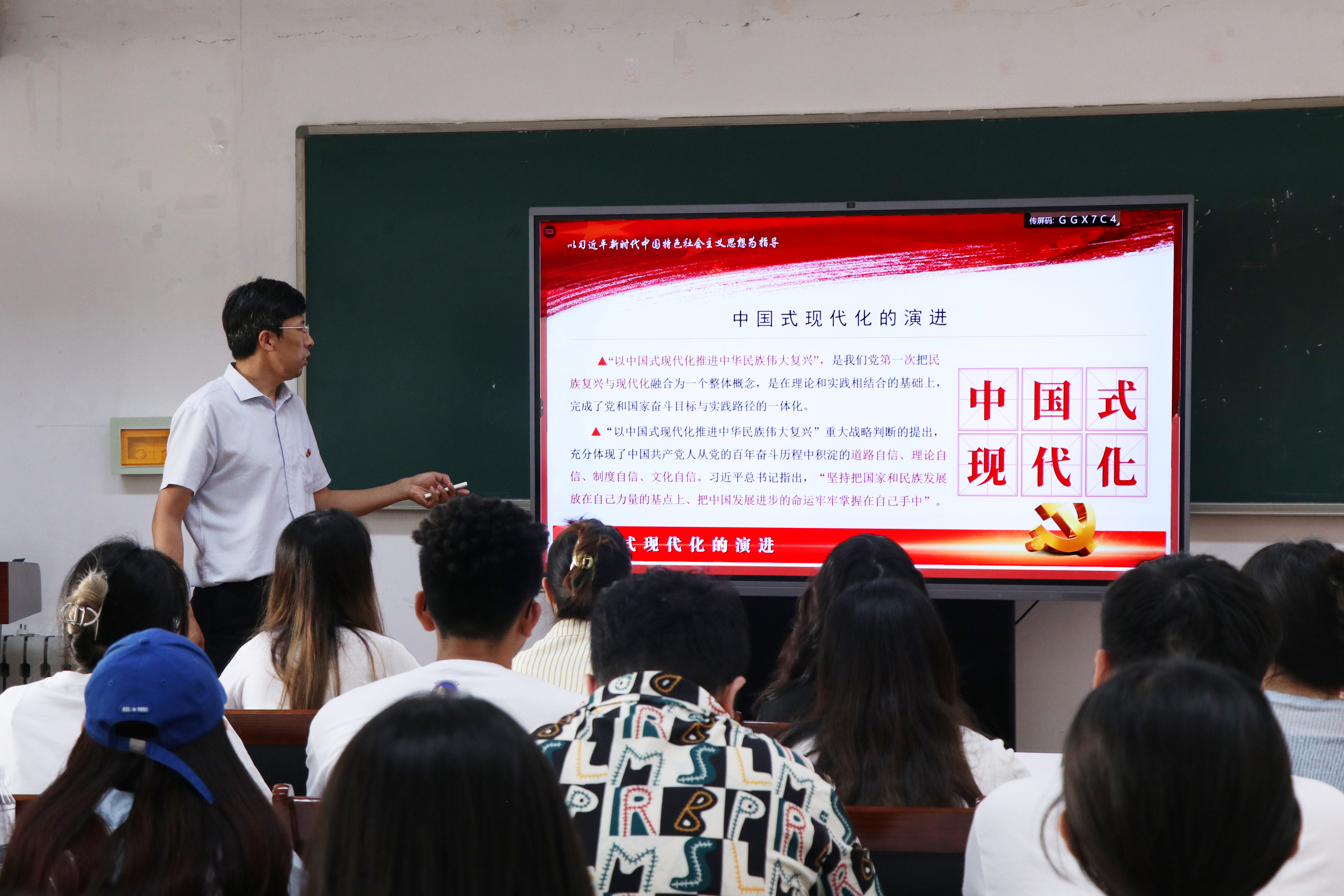 党总支书记刘志国主讲,2023届毕业生党员代表,其他年级党员代表参加活动。