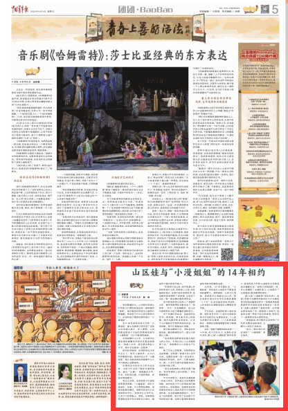 9月8日,中国青年报2023年09月08日05版以《山区娃与“小漫姐姐”的14年相约》为题,报道大赢家比分