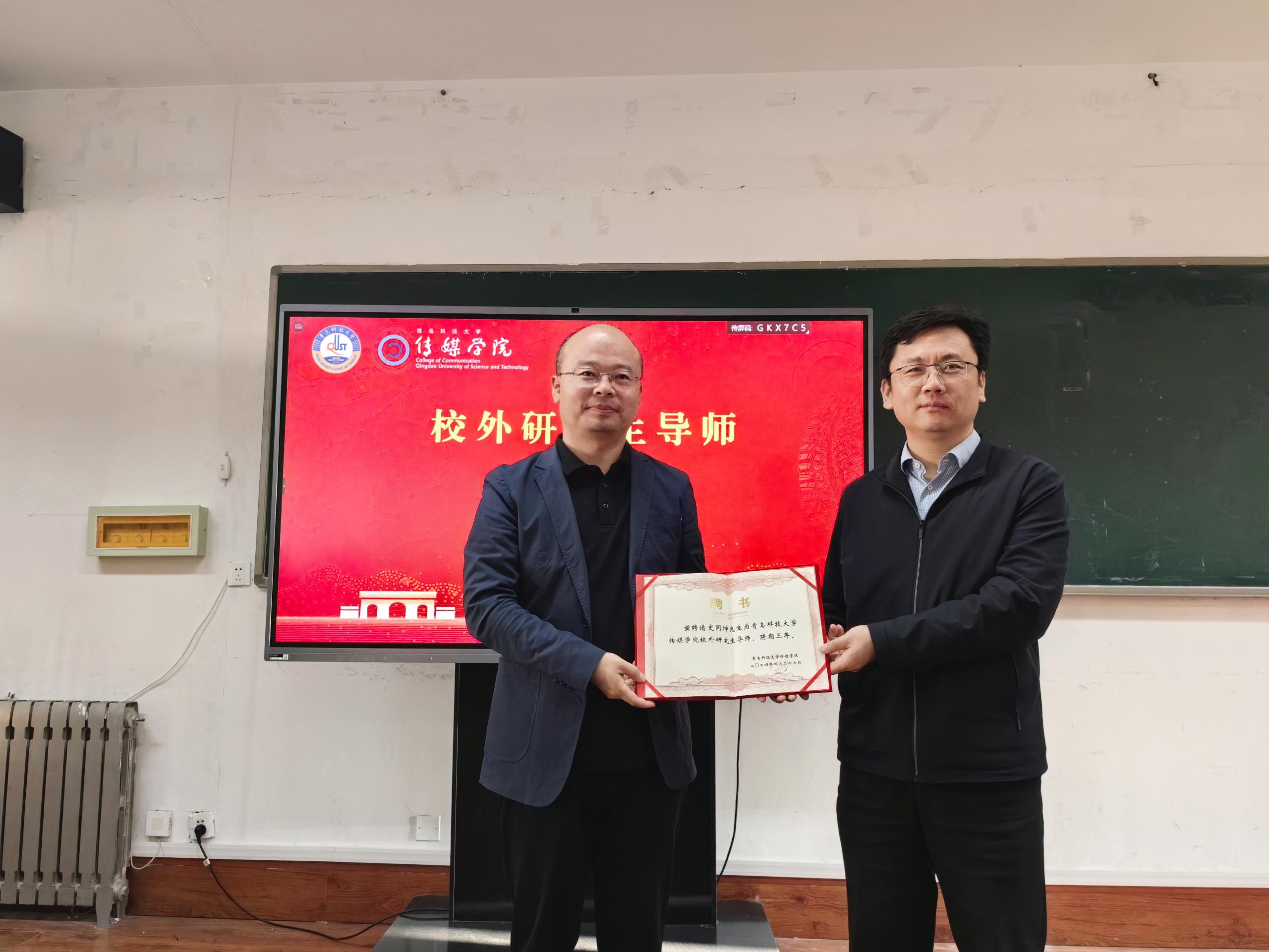 校外研究生导师”聘书,希望校企双方深化合作交流,推动产学研协同创新和人才培养,共谋校企发展良好局面。