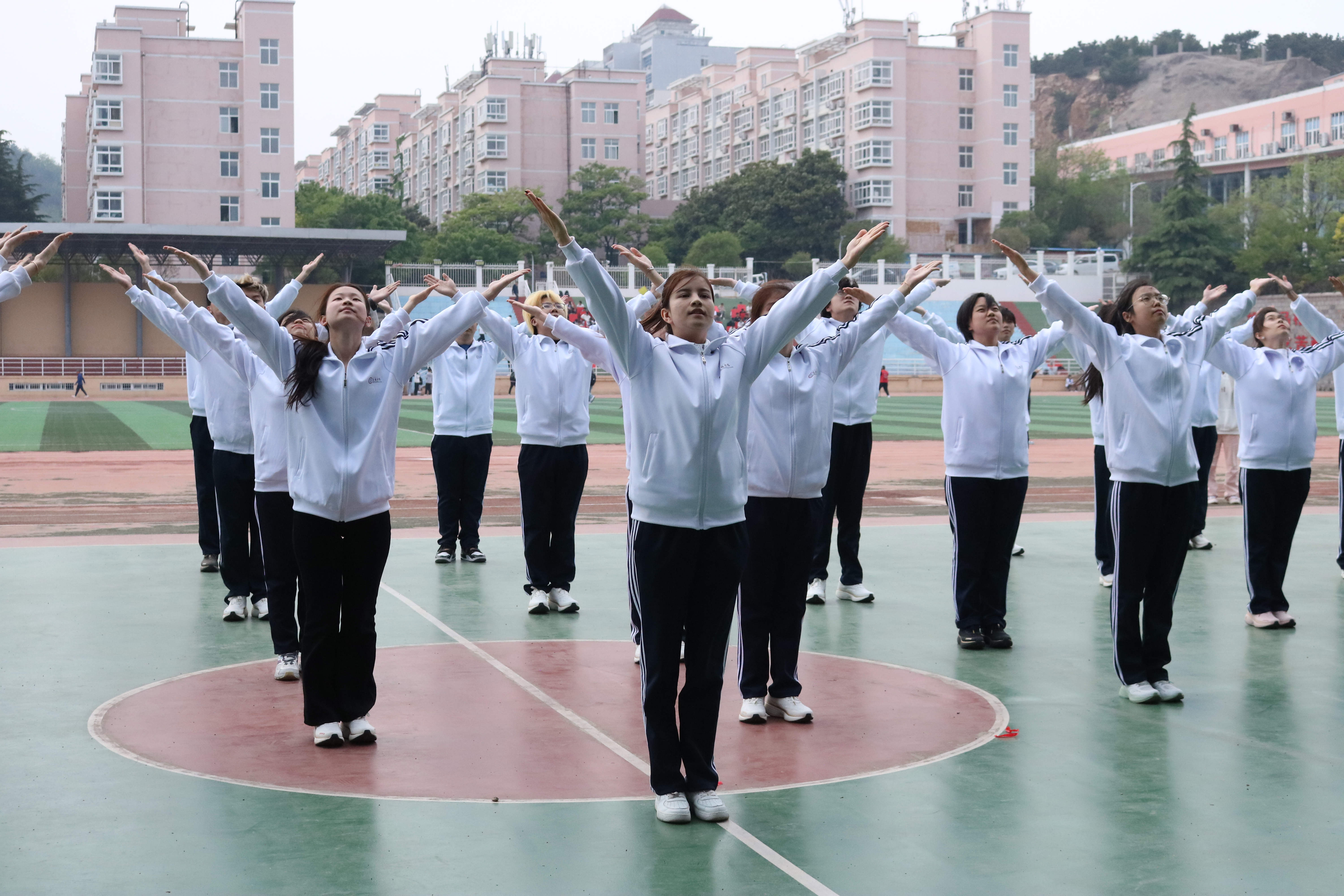 广播体操、运动会方队等训练成果展示,在激昂的进行曲与律动的体操曲中,同学们步伐协调一致,动作整齐划一,赢得了师生阵阵掌声。