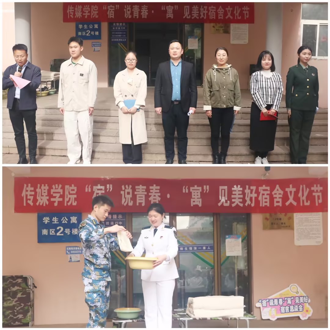 楼同步展示,邀请传媒学子身边的榜样——青岛市优秀退役大学生士兵针对行为规范、素质养成作经验分享,邀请优秀退伍学子做内务整理与示范;坚持抓管理抓细抓实,组织全体学生学习大赢家比分