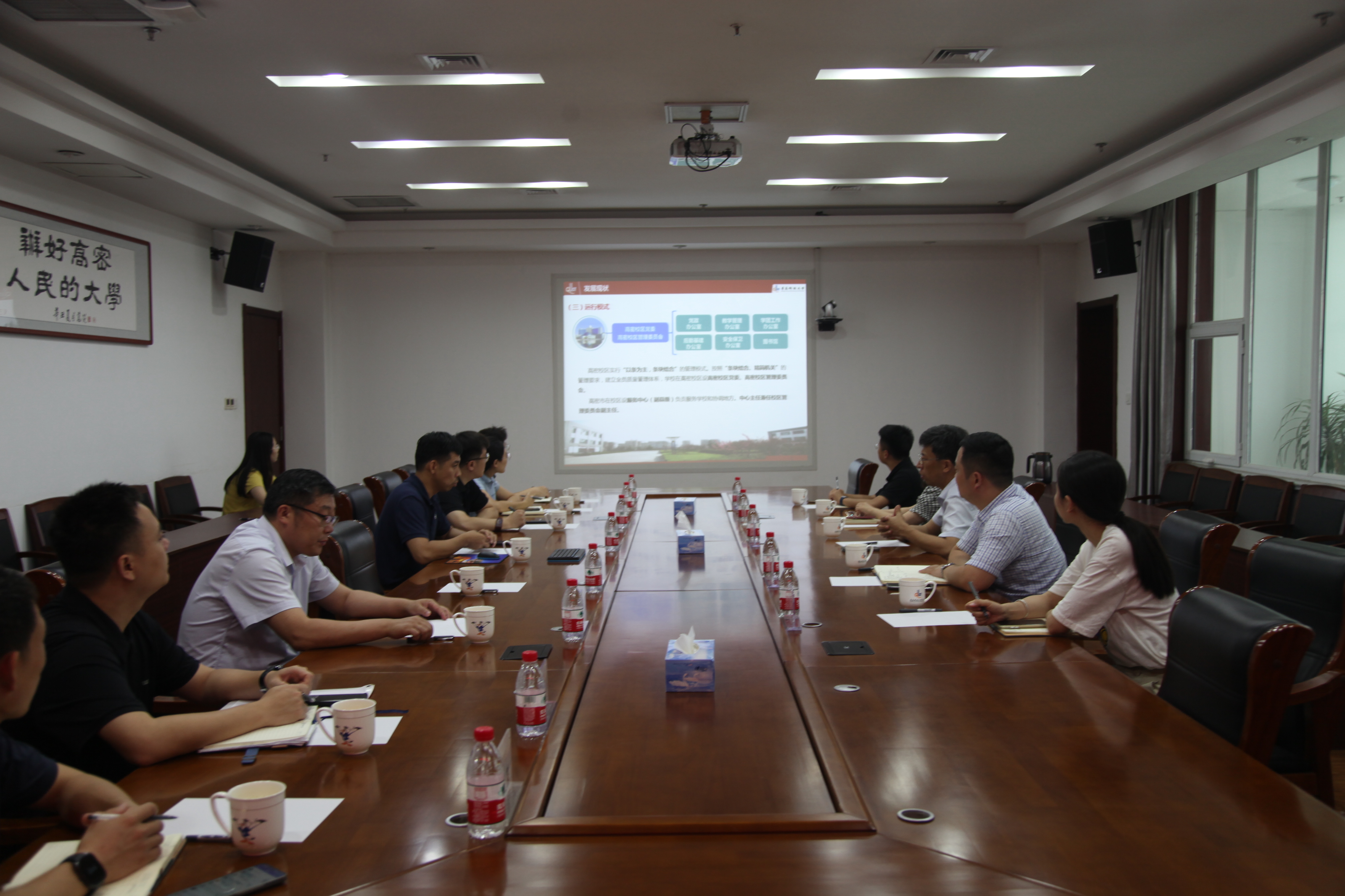 一行参观考察了高密校区规划沙盘、卫星数据处理中心等处。高密校区相关班子成员参加交流。
