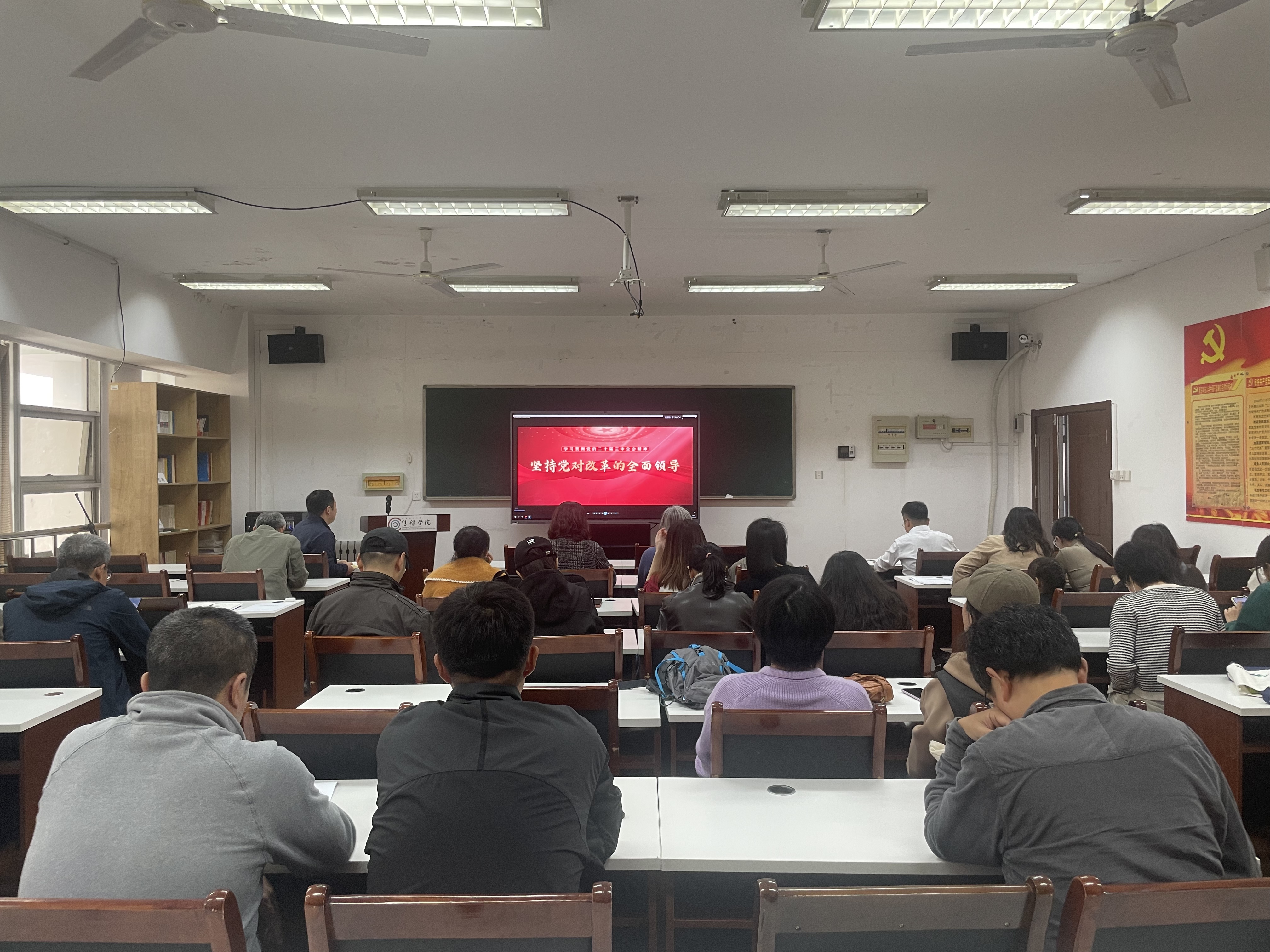 刘海波带领全体教职工深入学习了党的二十届三中全会精神,并组织观看了“学习贯彻党的二十届三中全会精神之坚持党对改革的全面领导”视频。张洪坤院长强调,党的二十届三中全会是在我国以中国式现代化全面推进强国建设、民族复兴伟业的关键时期召开的一次极其重要的会议。全会审议通过了《中共中央关于进一步全面深化改革、推进中国式现代化的决定》,深刻指明了进一步全面深化改革的主题、总目标、重大原则、重大举措、根本保证等重要内容,科学谋划了围绕中国式现代化进一步全面深化改革的系统部署,在新时代新征程上具有重大里程碑意义。我们要原原本本学、联系实际学,学出忠诚、学出责任、学出使命,在学习宣传贯彻党的二十届三中全会精神上走在前列、作出示范。