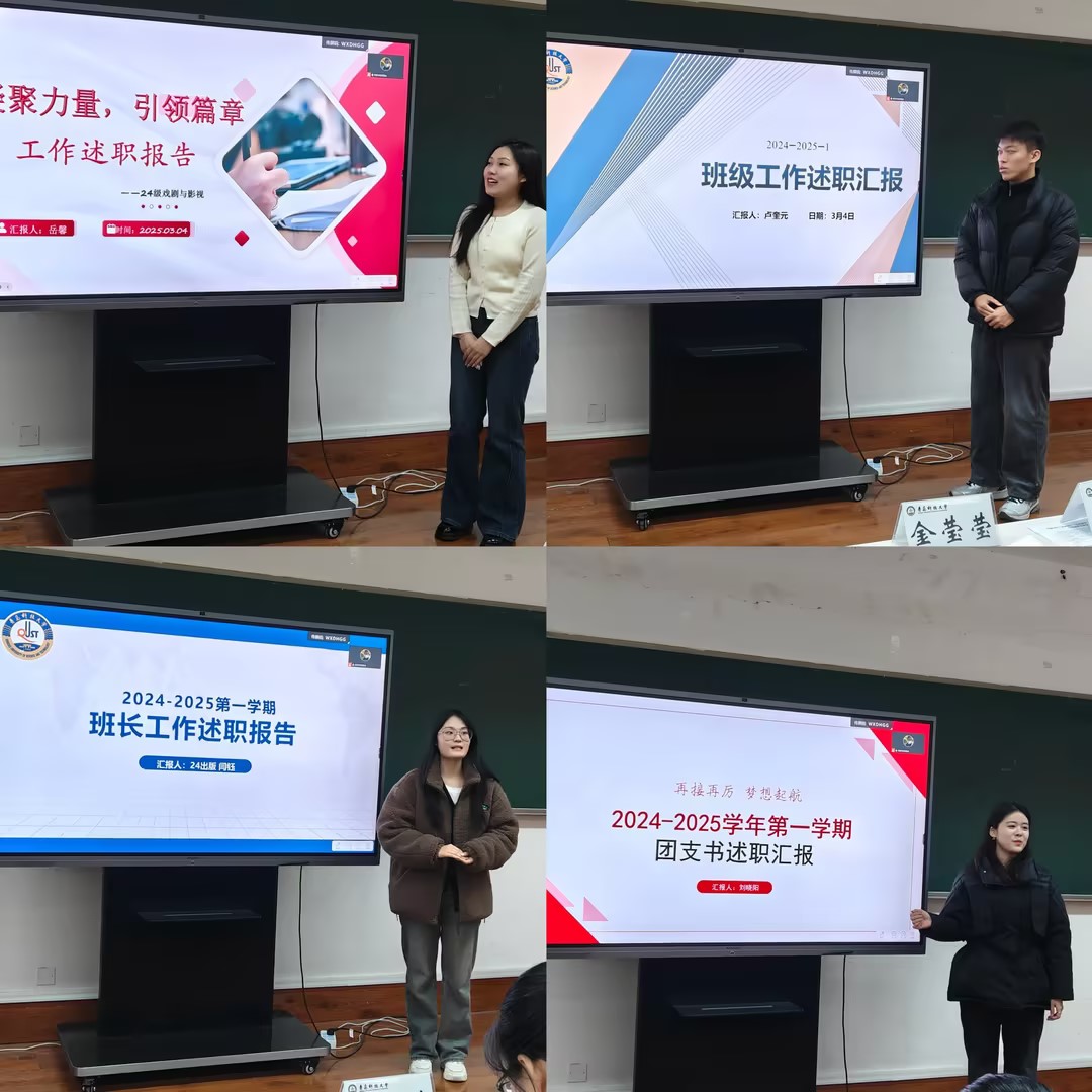 与会研究生班委围绕上一学期开展班级工作、服务同学,存在问题不足和下步计划举措,依次进行分享交流,聚焦日常班级管理、学术科研、讲座报告和宿舍内务卫生等重点工作进行系统梳理,通过PPT展示报告,为大赢家比分