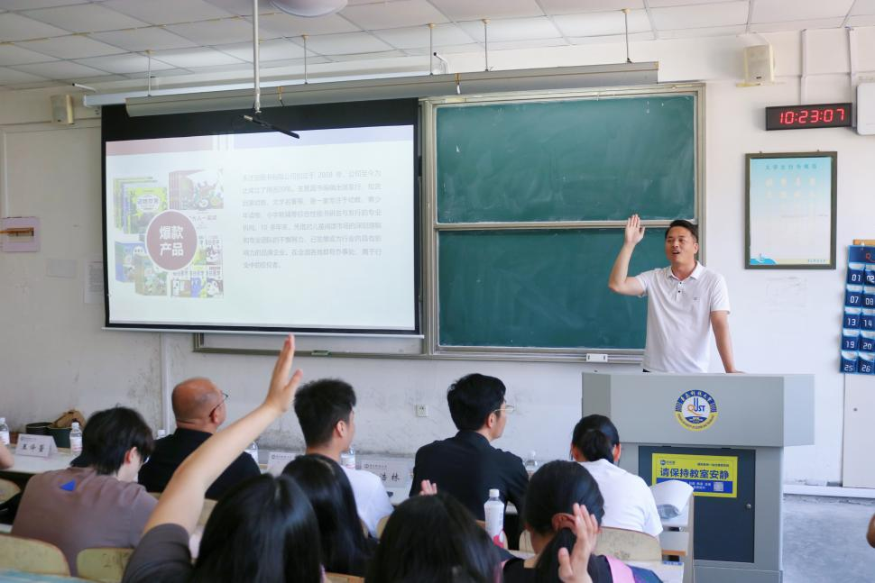 青岛成昌因特皮包有限公司销售总监唐晓磊通过多媒体展示、数据图表等形式,系统介绍了企业发展概况、主营业务、人才战略、招聘需求和应聘程序。青岛汇通世纪传媒有限公司总经理靳军、青岛天才豆图书有限公司经理孙浩林等介绍了新媒体运营、图书编辑等重点岗位的任职要求、薪酬体系及职业发展通道,并就“应届生能力培养”“行业发展趋势”等话题与传媒学子展开深入互动交流。