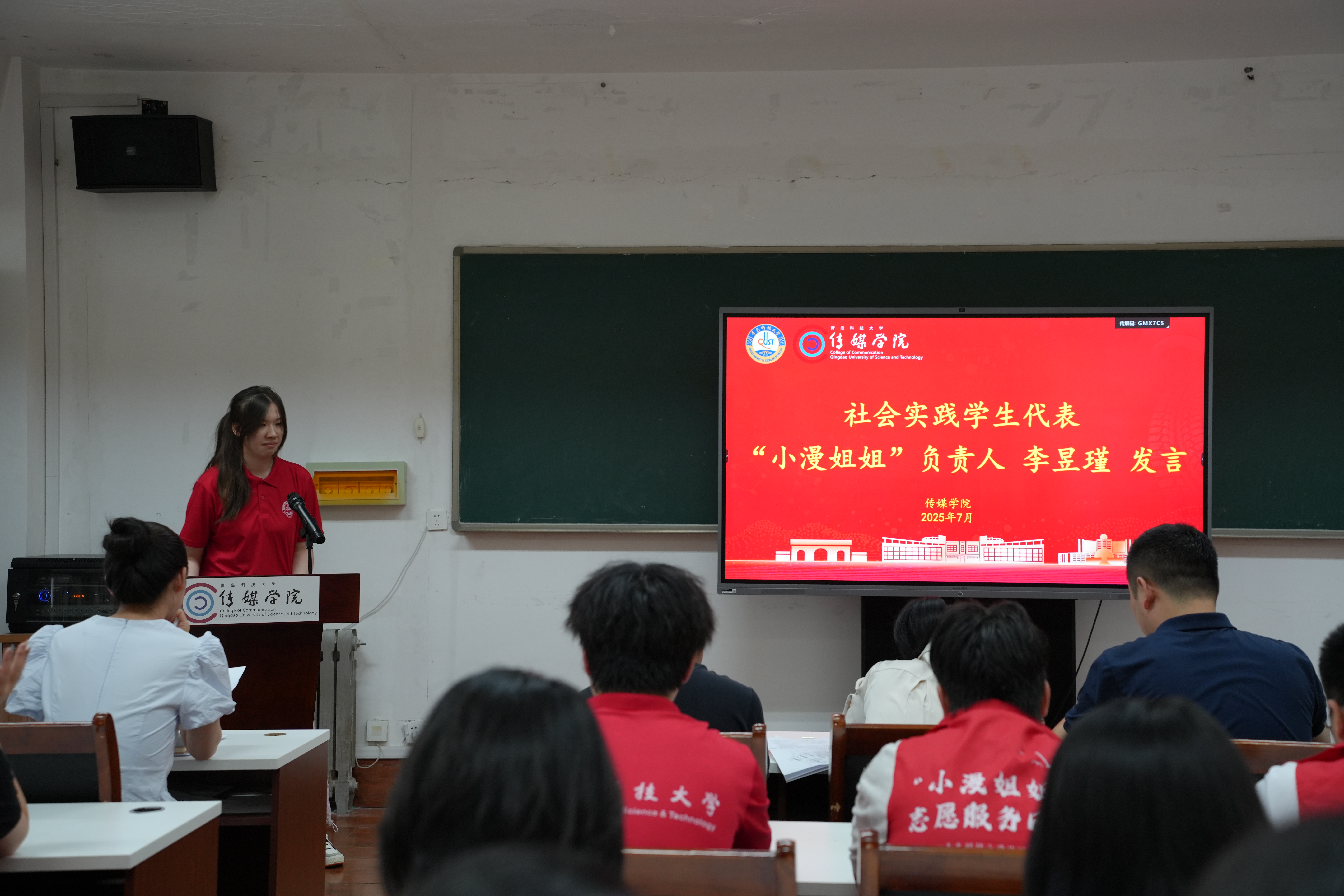“小漫姐姐”团队负责人李昱瑾在发言中表示:团队将秉持“三个用心”做好暑期社会实践:一是行前用心筹备,做好充分准备;二是实践用心倾听,以传媒人的专业素养传递温暖;三是全程用心陪伴,与孩子们携手同行、共同成长,展现新时代青年的责任担当。