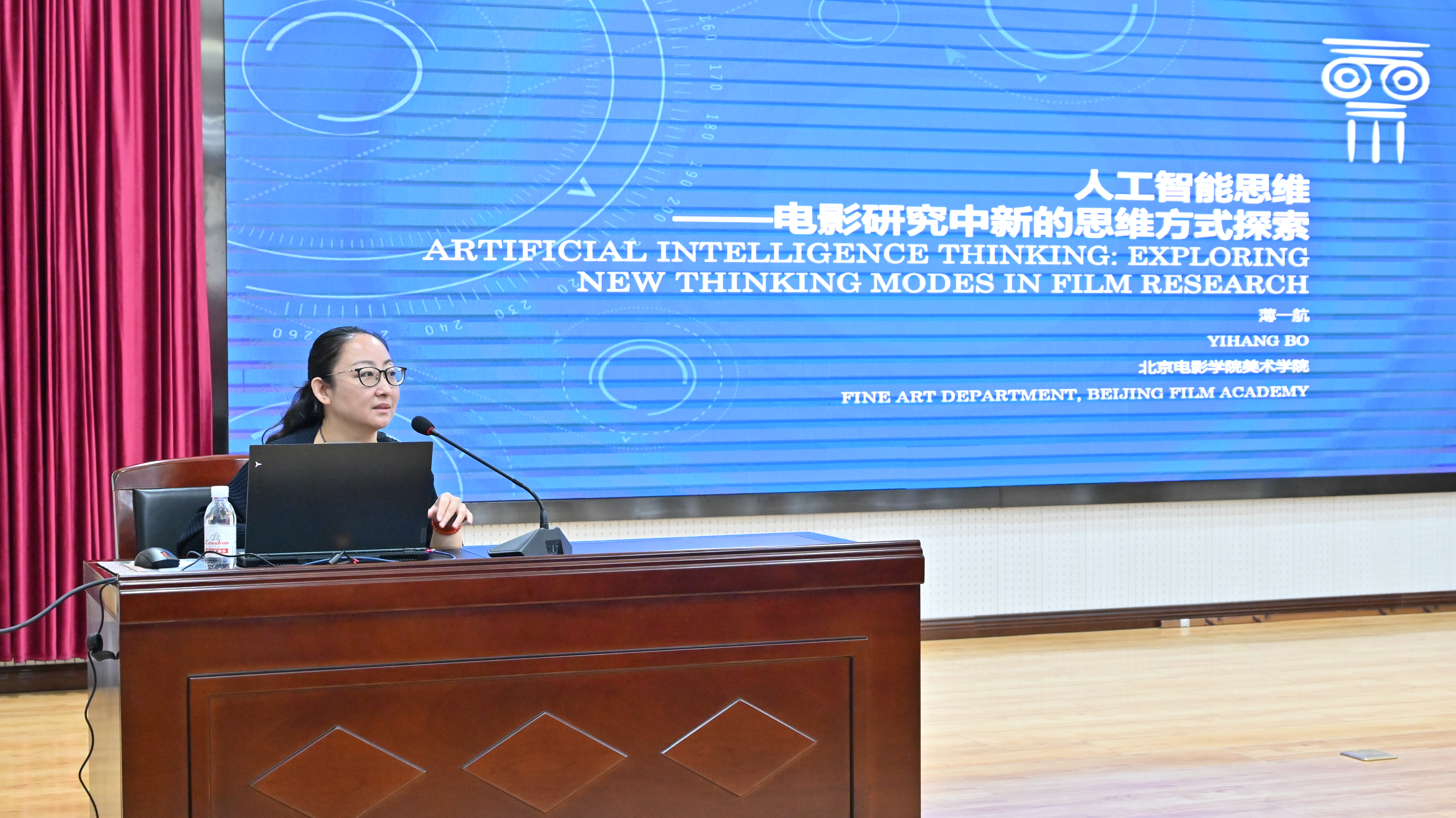 副教授薄一航以其横跨工学与艺术的独特学术背景,作了题为《人工智能思维——电影研究中的思维方式探索》的专题报告,为现场师生带来一场兼具理论深度与前沿视野的学术分享。薄一航重点介绍了计算机视觉技术在电影研究与创作中的创新应用,包括通过图像识别、场景分析等手段对影片视觉风格进行量化研究,以及为艺术创作提供数据支持的具体案例。结合自身科研与教学实践,薄一航深刻阐释了在“新文科”建设背景下跨学科人才培养的紧迫性与实施路径。