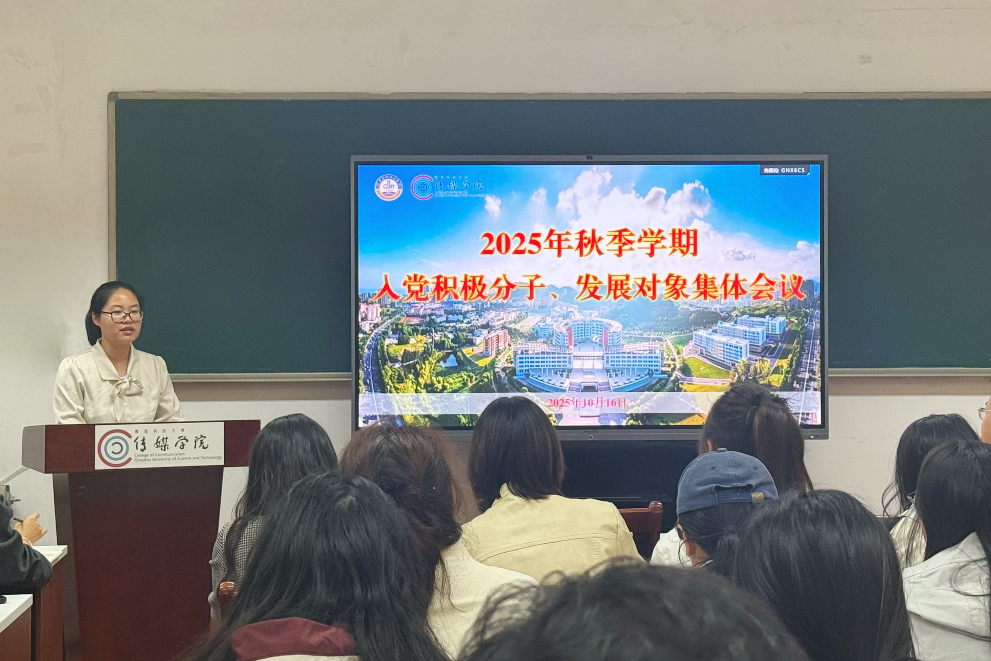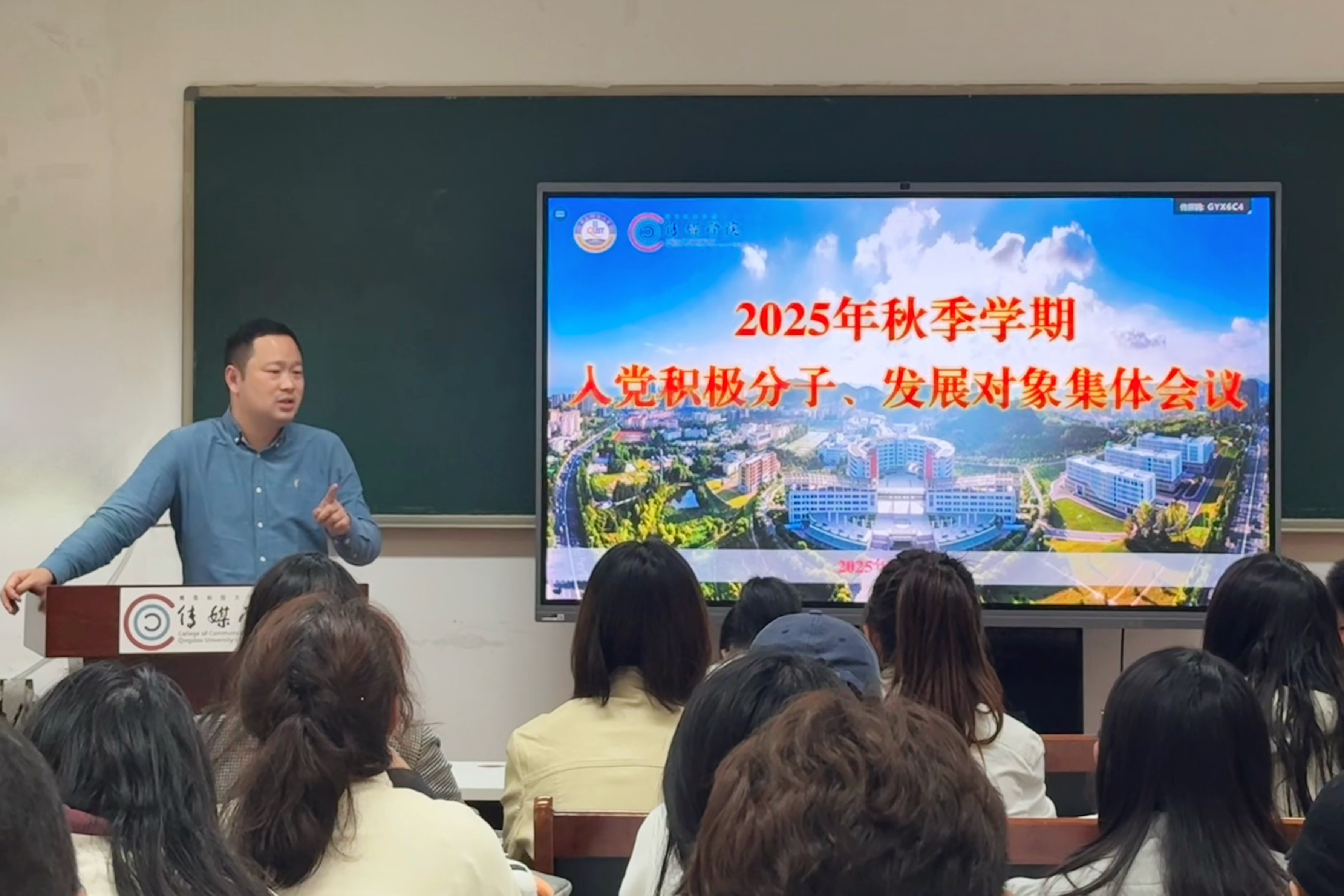 发展大局。二是提高政治站位,端正入党动机,锤炼优良作风习惯。全体入党积极分子和发展对象要始终把政治标准放在首位,严守纪律规矩,做到“政治强、业务精、纪律严、作风正”,在学习科研、学科竞赛、宿舍治理、志愿服务、社会实践中发挥表率作用,加强作风锤炼。三是强化责任担当,练就过硬本领,奋力争做时代新人。要学出传媒范、亮出小漫牌,对照党员标准,将责任放在心上、扛在肩上,主动投身实践熔炉,练就过硬本领,以专业素养服务经济社会发展,争做有理想、敢担当、能吃苦、肯奋斗的青科传媒人。
