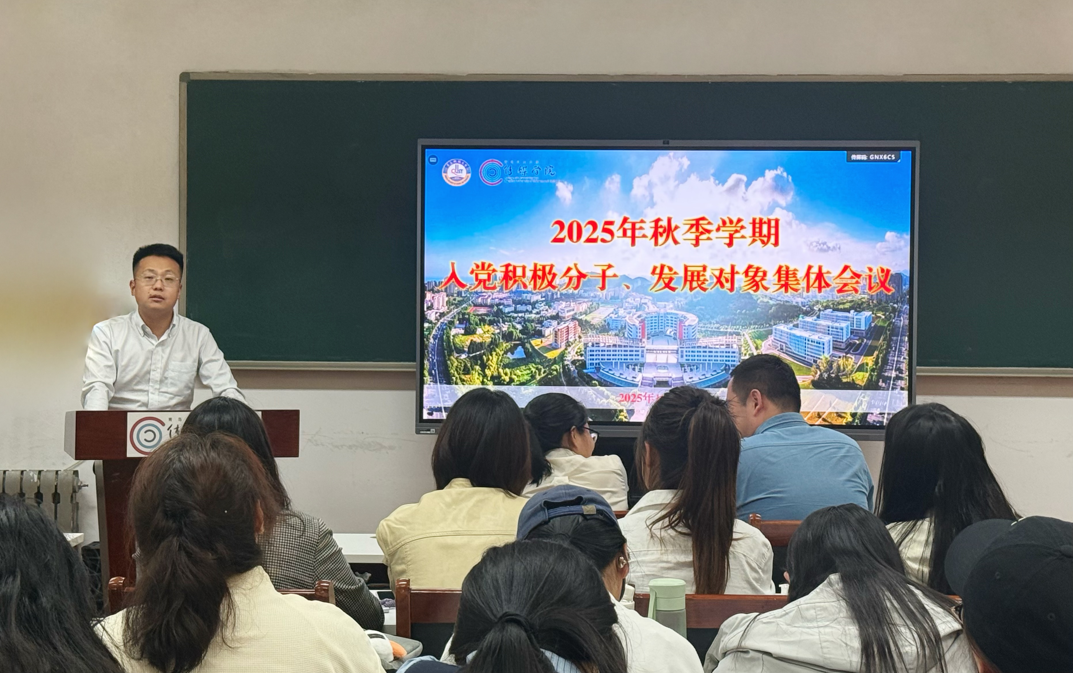 金莹莹就本学期组织发展流程规范、培养考察重点及实践教育安排进行详细说明。刘福民重点督促了关于党课学习及党课考试纪律有关问题。