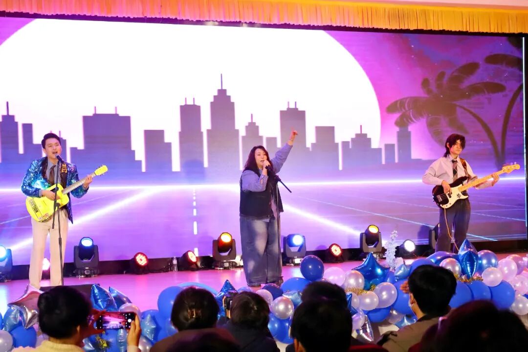 街舞《舞动青春》动作利落、节奏炸裂,尽显学子朝气;小品《开学第一天》以校园生活为蓝本,诙谐情节引得笑声不断;合唱《我的祖国》旋律铿锵,师生齐声高歌,共同唱响家国情怀;最后,教师代表及全体演职人员共同唱响结束曲《相亲相爱》,温馨旋律缓缓流淌,为这场温暖而热烈的晚会画上了一个圆满的句号。