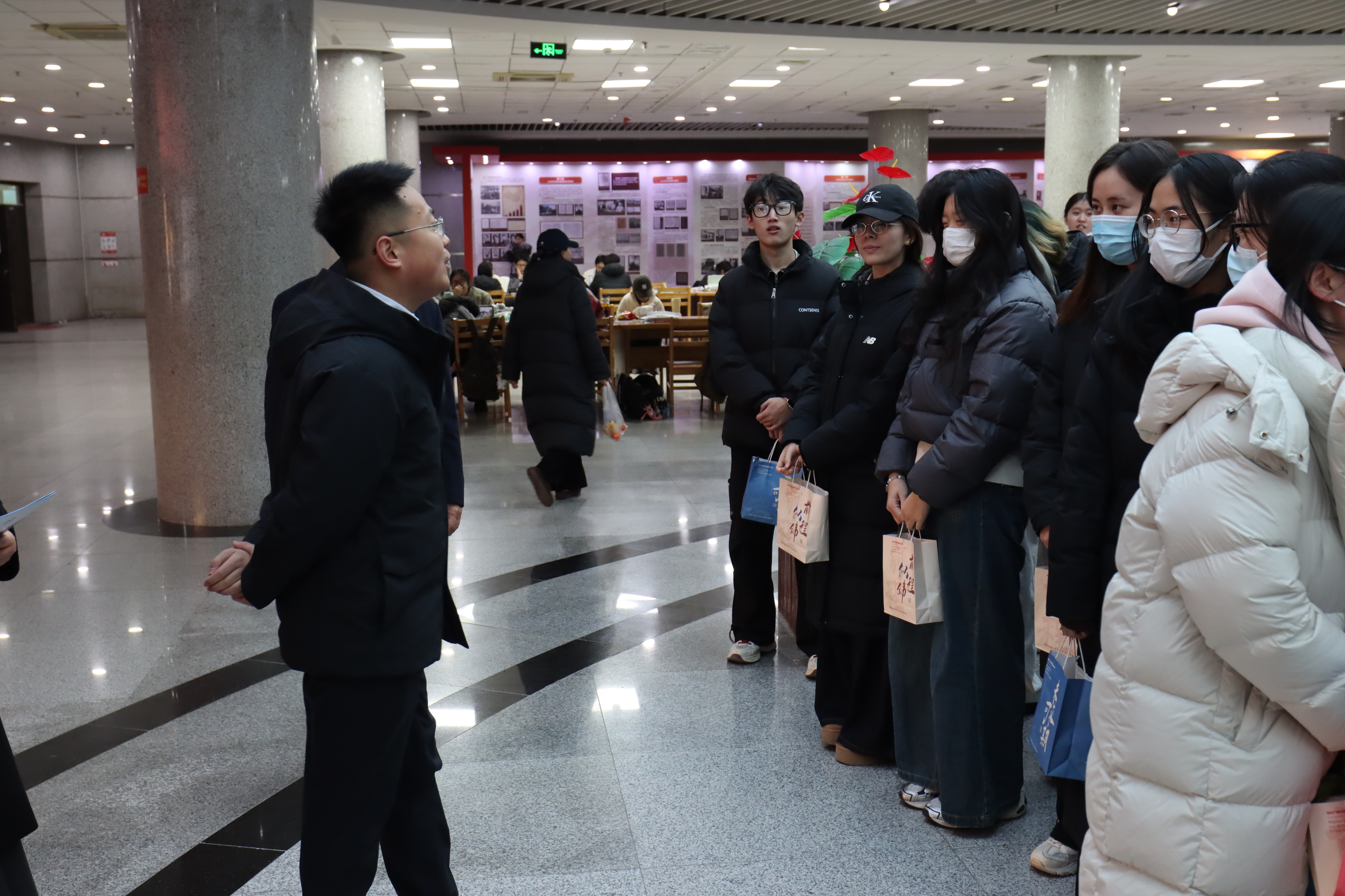 党委书记孙洪广、副院长(主持工作)石晨旭、党委副书记兼副院长刘海波、团委副书记兼学工办副主任金莹莹及2026届毕业生辅导员刘福民组成慰问组,带着精心准备的“暖心大礼包”走进图书馆自习室,与奋战在考研一线的同学们亲切交流,送上大赢家比分