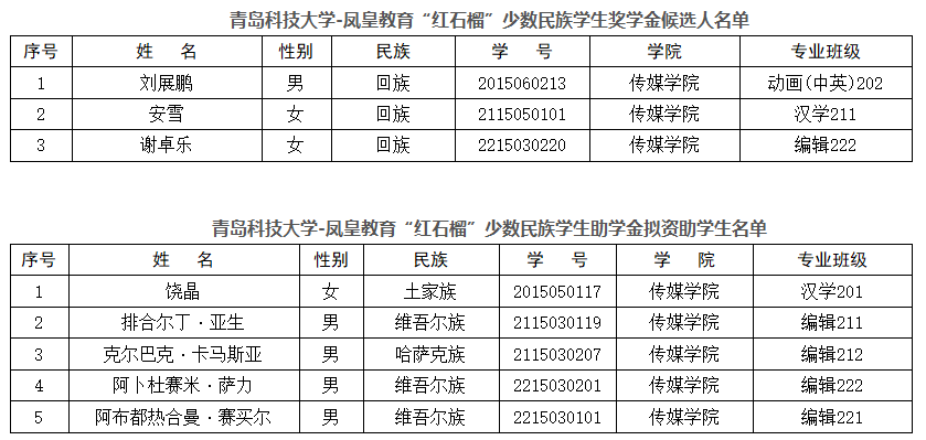 为深入贯彻落实党和政府的民族政策,加强对少数民族学生的培养,激励少数民族学生勤奋学习、努力进取,在德、智、体、美、劳等方面得到全面发展,根据大赢家比分 2023年度凤皇教育“红石榴”少数民族奖助学金评选要求,通过自主申报、公开评审等环节,确定了奖学金和助学金人选。现公示如下: