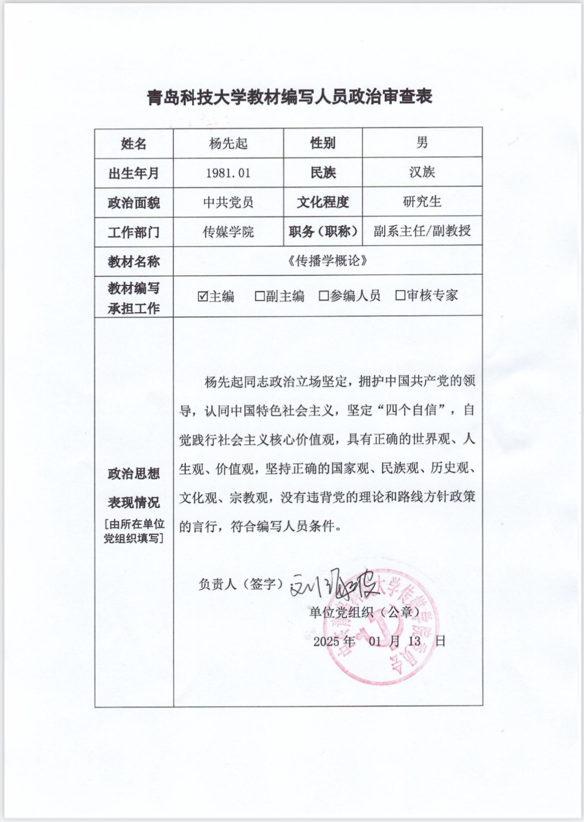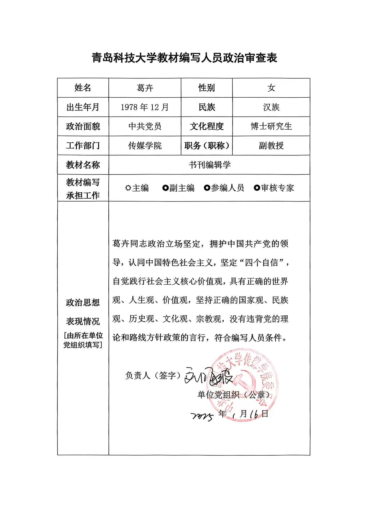 经大赢家比分 党委会审核同意,对教材编写人员葛卉、杨先起、单娟政审情况予以公示,公示期为5天(2025年1月16日-20日),如有异议,请在公示期内向大赢家比分 教学办反映。
