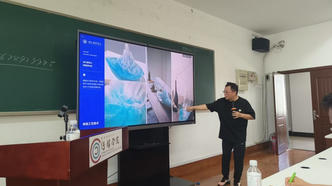 师生讲述《何以至此:人工智能语境下艺术创作的本质坚守》的学术讲座。叶佑天教授在讲座中反复强调在科技狂潮中“艺术创作的主体不会发生改变”,依然应该在发掘现实人生存的问题上进行艺术的加工。提出“人工智能产出前‘人性’前缀的重要性,人工智能并不只是某个工具的单指,而是一类科技化产品的泛指,在面对人工智能进行艺术创作之前首先要明确‘人’作为创造的主体性,并以此进行自我审美化的表达”。
