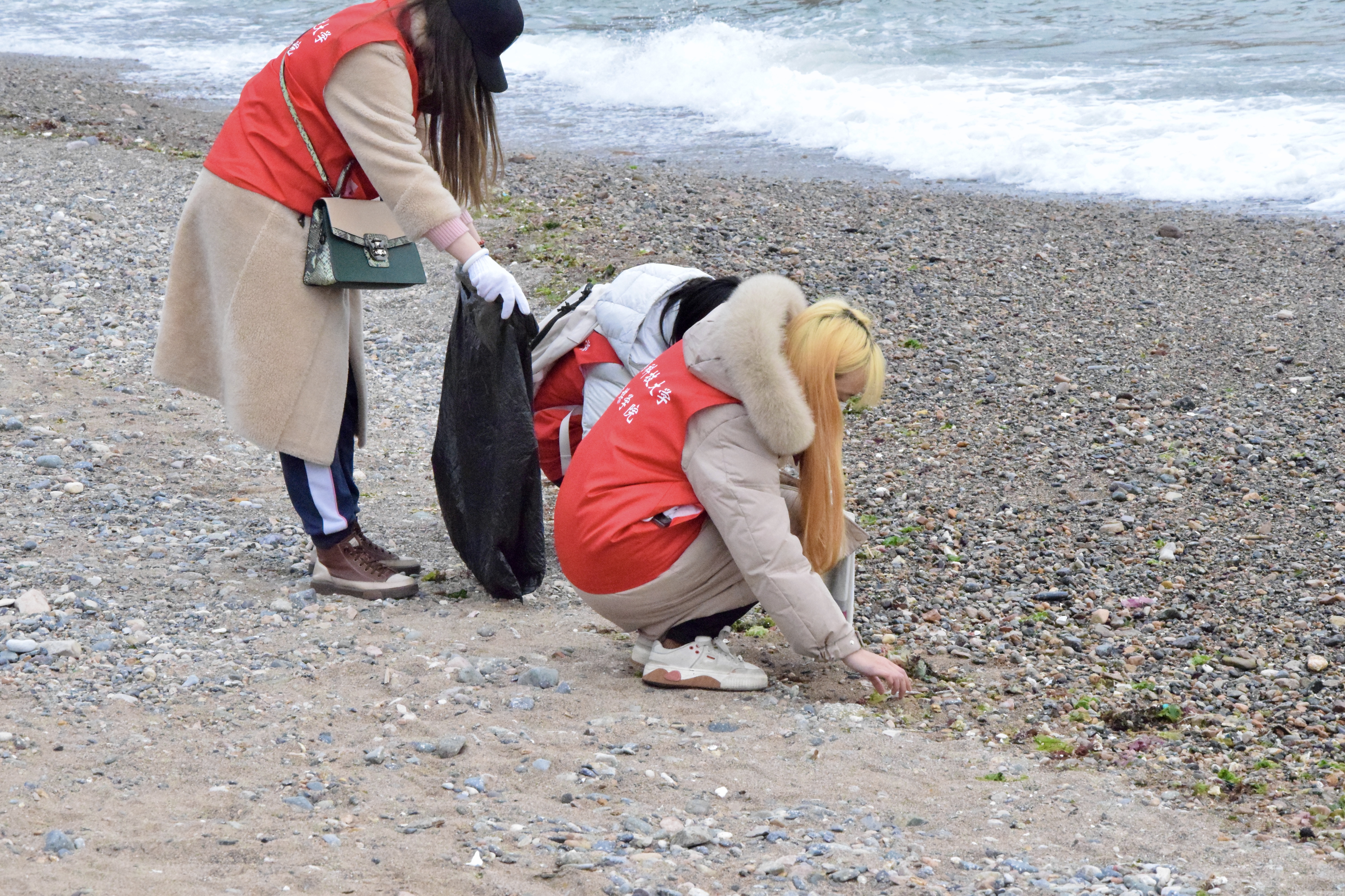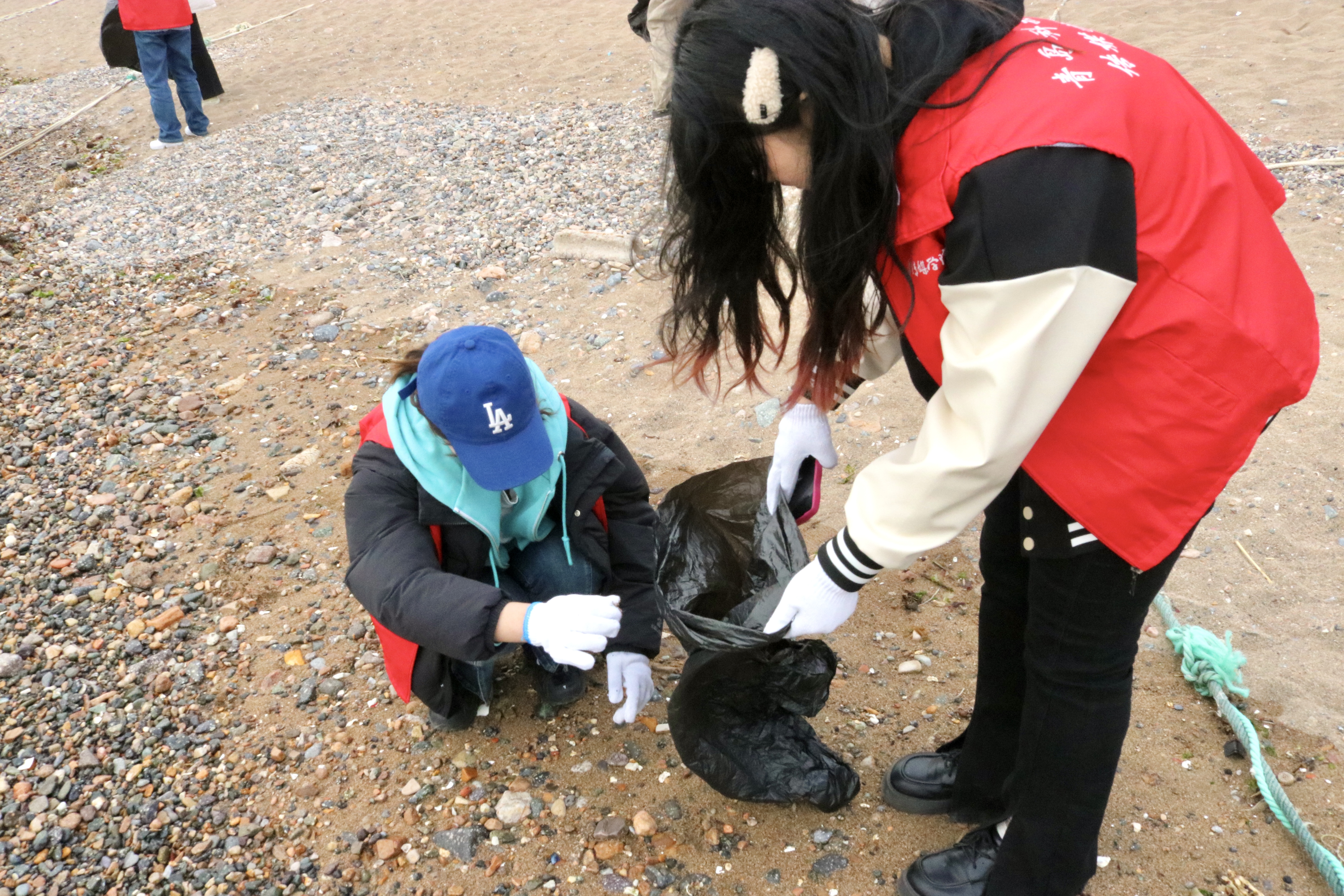 活动中,大家分工合理,积极认真,不放过任何一个边边角角,虽然天气有些寒冷,但大家不怕脏、不怕累、不畏寒冷、奋力争先,经过近两个多小时的清理,整个沙滩变得干干净净。