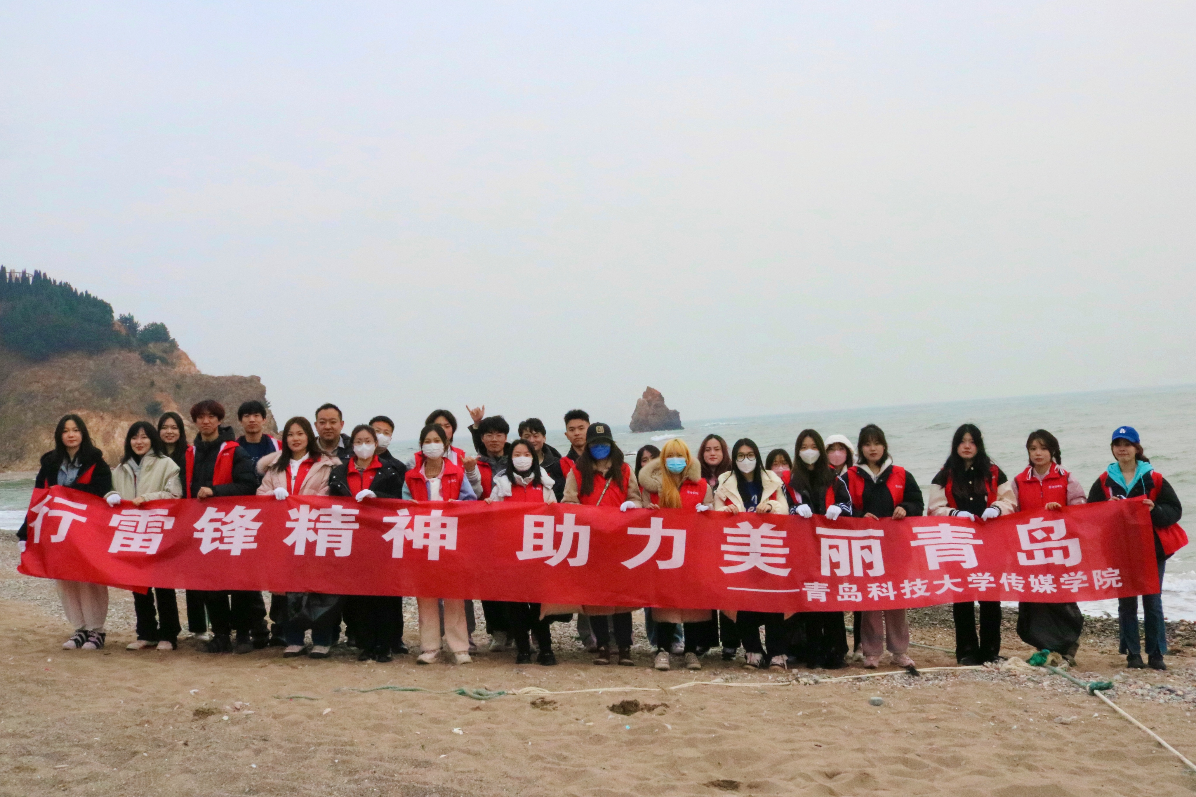组织志愿者来到石老人海滩开展雷锋日海滩净化志愿活动。