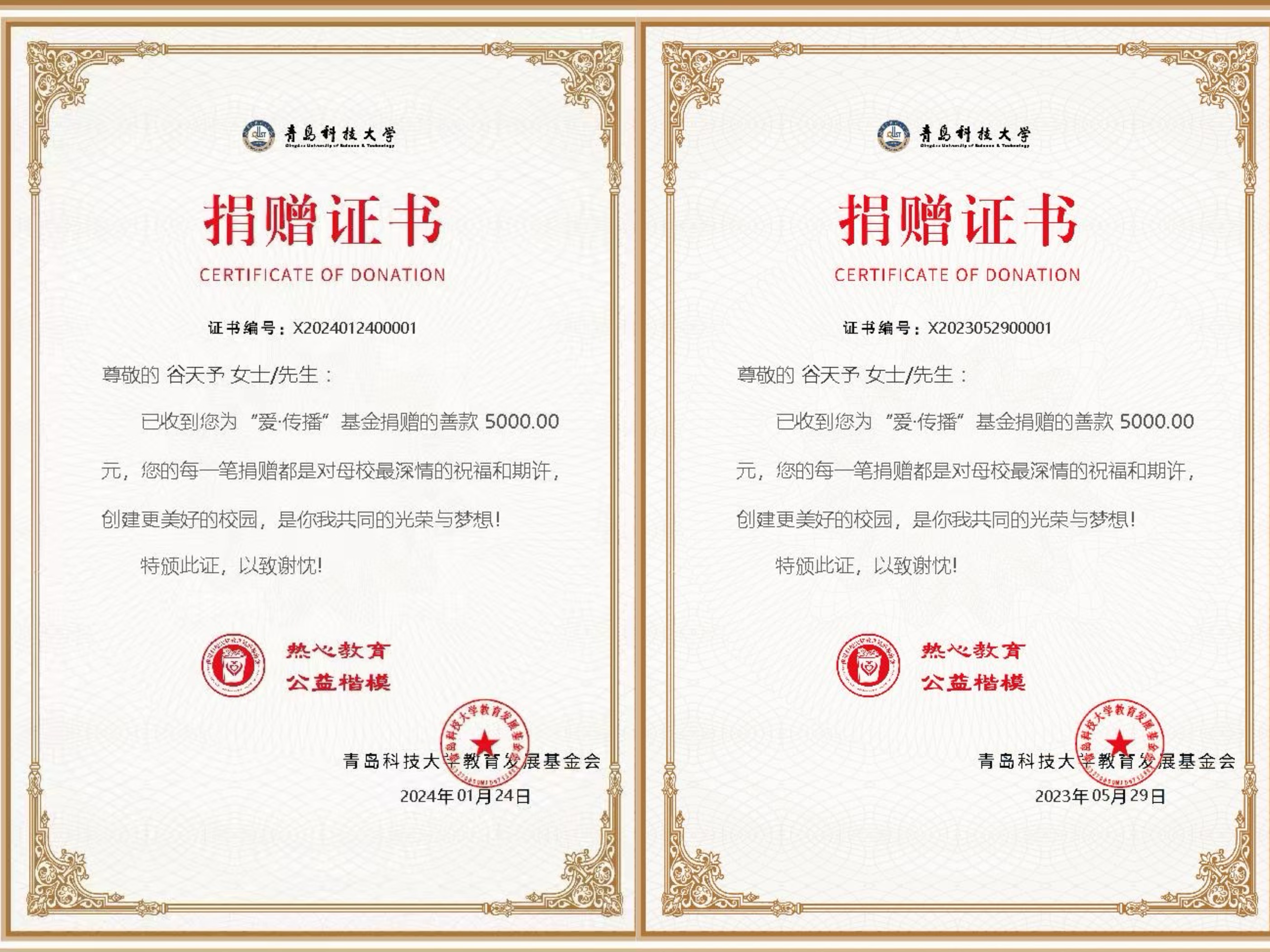 据悉,这已经是谷天予同学第二次向“爱·传播”基金捐款,在去年疫情期间,她曾主动捐款5000元以帮助困难学生;作为班级团支书,她还多次响应大赢家比分