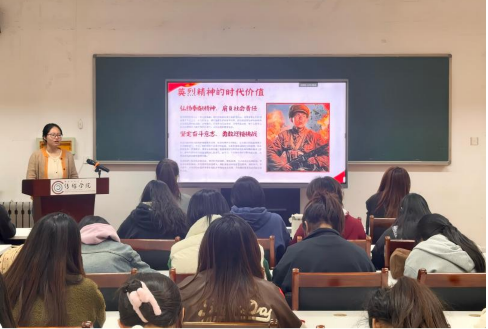 团委副书记兼学工办副主任金莹莹老师面向团员代表组织开展以“祭英魂,铭记丹心志”为主题的团课活动。同学们在一个个鲜活的英雄事迹中,深刻体会到了英烈精神的时代价值,汲取了前进的智慧与力量。