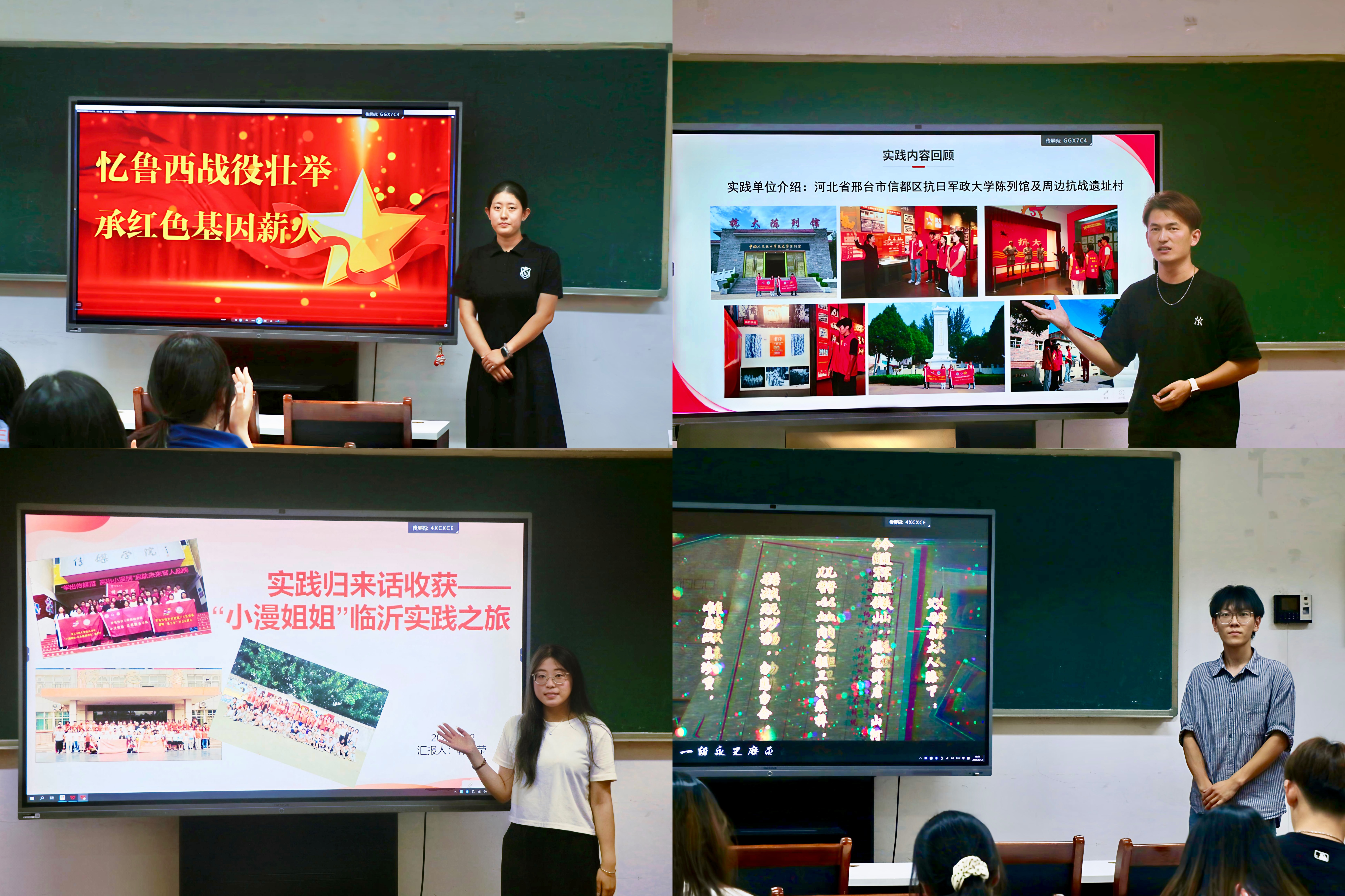 会上,社会实践团队代表与个人代表依次登台,以多元视角展现暑期实践的丰硕成果。同学们聚焦红色精神传承、乡村振兴助力、非遗文化弘扬、基层服务践行等主题,通过精心制作的图文展示与纪实视频,生动讲述了各自的实践历程及经验收获等。