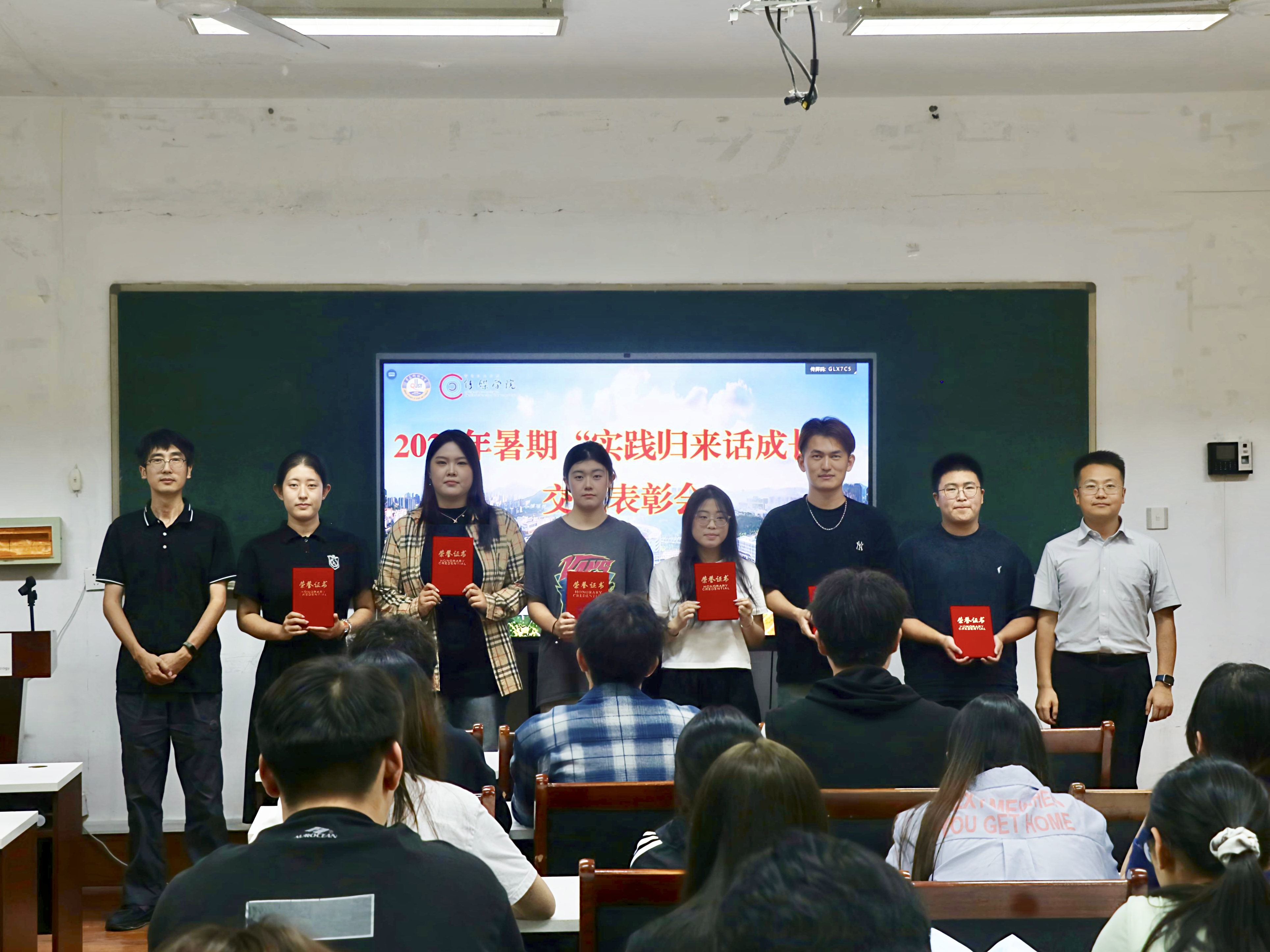 交流分享结束后,赵岩、刘福民为院级社会实践优秀学生代表颁发证书,以表彰先进、树立典型,进一步发挥示范引领作用。