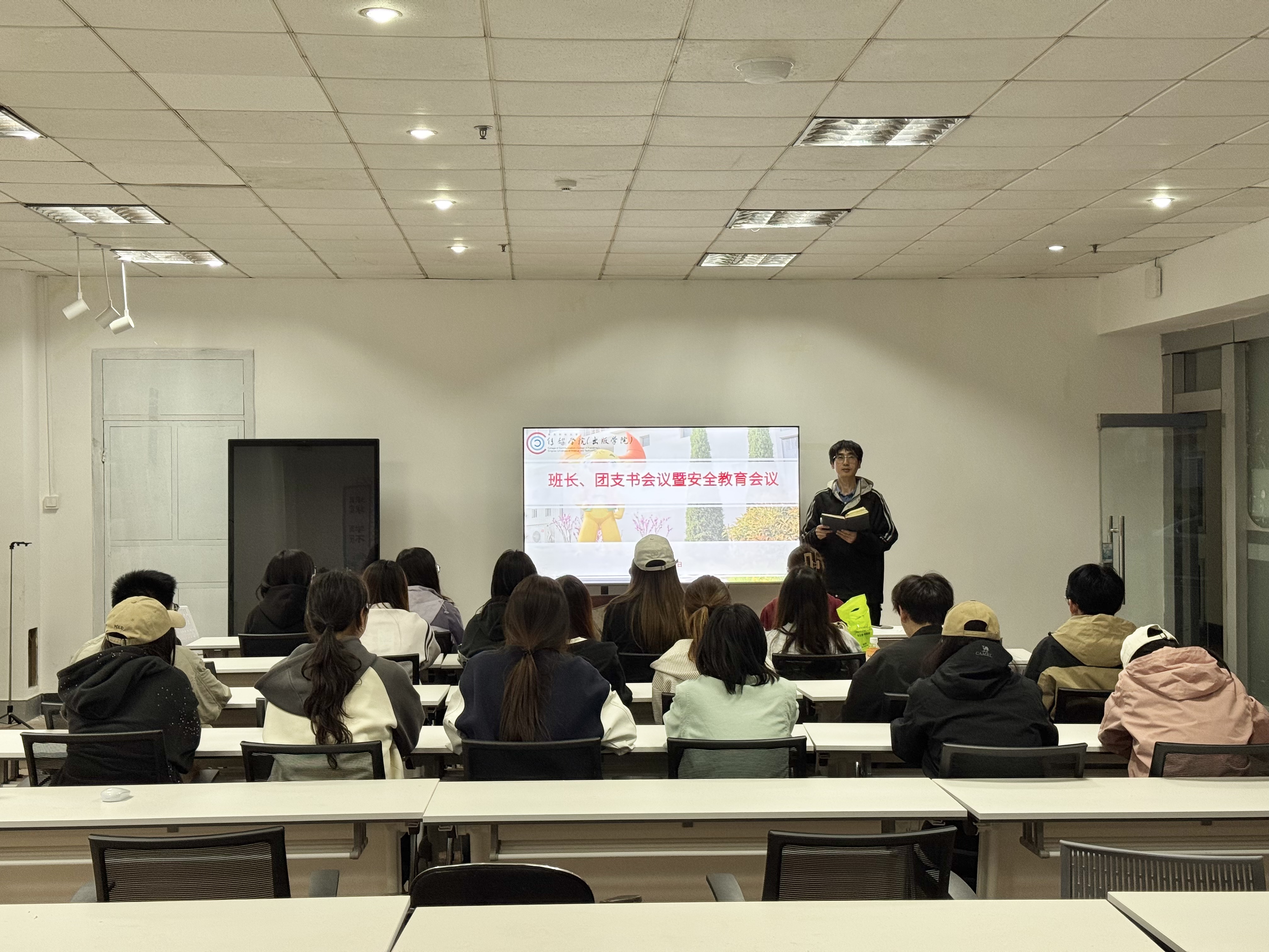 “五一”假期安全管理相关通知要求,主动牵头做好假期安全防范、政策传达等工作,督促同学们落实离校备案手续,提醒留校同学严格遵守各项管理纪律,切实筑牢校园安全防线。同时,结合“五四”青年节,号召学生干部将个人理想融入国家和民族的事业中,以实际行动践行五四精神,努力成长为有理想、敢担当、能吃苦、肯奋斗的新时代好青年。