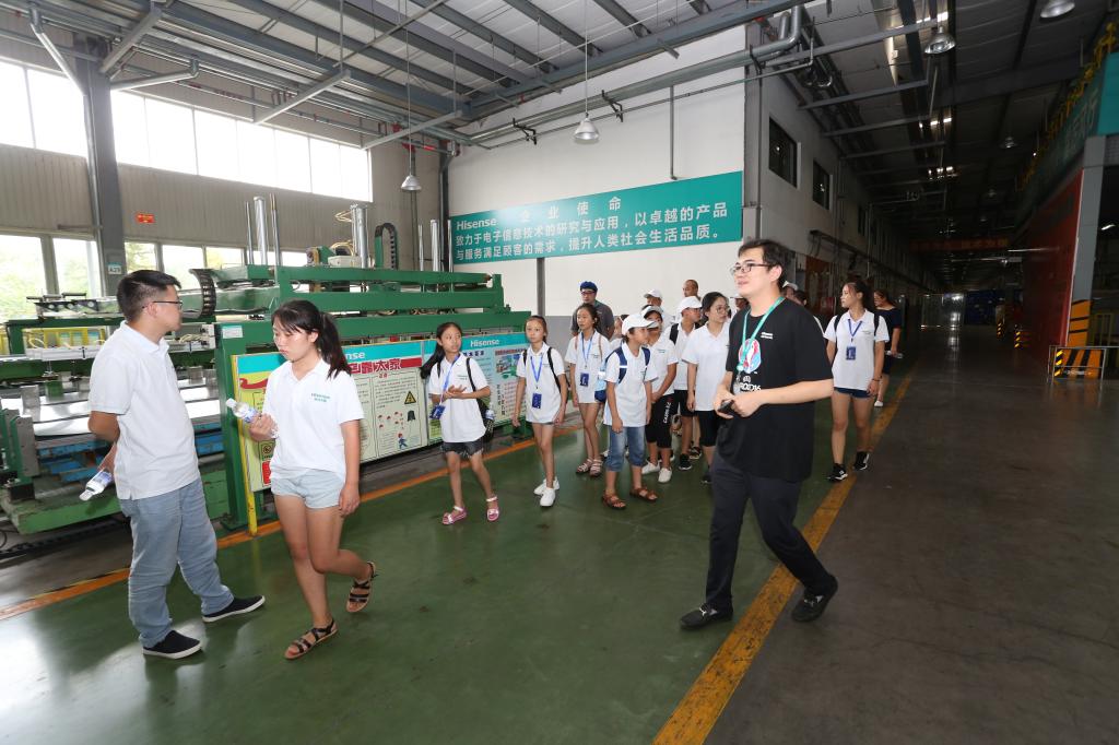 八月十八日上午十点,班车准时到达山东海信家电生产工业园。在车间主任的耐心解说下,服务团与小朋友们一起参观了海信冰箱及洗衣机的生产、组装、包装成品及运输生产线。生产、包装、运输的全线机械自动化运行令参观者大开眼界,这一系列的参观也大大增强了小朋友们的求知欲,坚定了要好好学习的强烈信念。