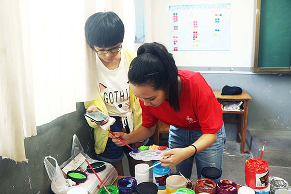 来参加这次活动,留下一段美好的回忆。首先志愿者们开展了对手语操《明天,你好》的学习,孩子们对手语操都很有兴趣,也学习的很认真,手语操的教授也是让孩子们知道聋哑人这一群体的存在,也可以让孩子们学会善良,用自己的行动回报社会。随后志愿者们开展了手绘t恤的活动,孩子们可以去挑选颜色去绘制自己喜欢的卡通人物。有的画小猪佩琪,有的画小熊,有的画皮卡丘,在志愿者们和小朋友的共同努力下,慢慢绘制出了一幅幅美丽而又多彩的衬衫。这些活动不仅可以拉近志愿者们与小朋友之间的距离,也可以让志愿者们更加深入去了解孩子们的内心世界。