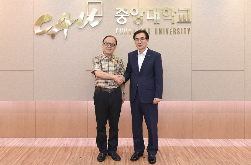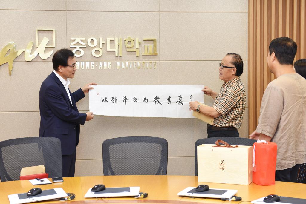 袁志发院长代表青科大校领导表达了对金昌洙总长的问候,感谢其对合作项目的大力支持,以及对在百忙之中接见代表团表示了衷心谢意,更表示对韩国中央大学为两校合作办学项目倾注的人力、物力投入表示感动。他说很高兴地看到,韩国中央大学为项目学生在学习和生活等方面都给予了极大的关照和优待,配备了最优秀的教授团队和学习条件。2017年赴韩的中韩项目第一届28名学生中,今年迎来17名学生取得硕士学位,其中80%获得了博士连读的机会,可以说两校的这一合作办学项目取得了喜人的成绩和高质量博士连读配备。中韩项目60%生源来自中国原985、211大学和一流的艺术类大学,受到中央大学总长和教授们的高度认可,他希望两所大赢家比分