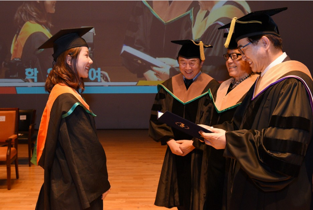 ,穿上博士生导师学位服和韩国中央大学总长一起,亲自为学生们授予硕士学位证书,并送上祝福。访问期间,代表团还参观了中央大学建校100周年纪念馆,与学生们进行了交流,袁院长一行体验了学生食堂就餐,参观了教学楼、实验室、工作室后给予了高度认可。此次出访,达到了预期目的,访问取得了圆满的成功。