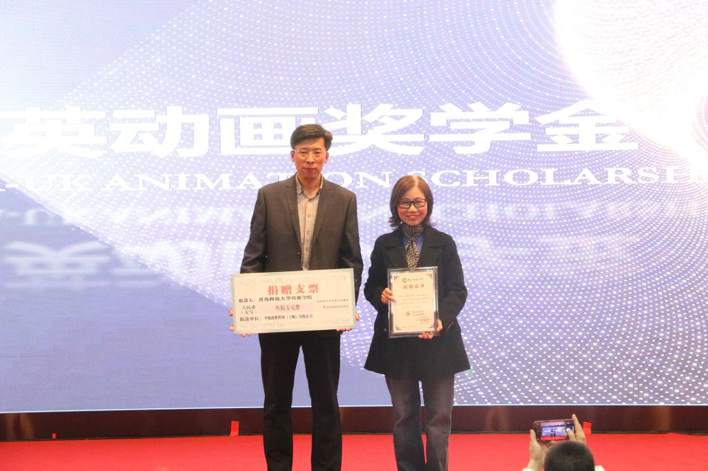 捐赠30万元。随后,布拉德福德电影城吉祥物设计大赛颁奖典礼、中英摄影大赛颁奖典礼和首届暑期工作坊颁奖典礼相继举行。“学领中英动画奖学金”颁奖仪式共颁发雅思激励奖、英语进步奖、布大创作潜力奖、科大原创艺术奖、积极进取奖、课业全面发展奖、优秀作品奖、优良学风奖、卓越贡献奖、优秀班级导师奖和优秀集体奖等11个奖项,用来激励在雅思考试、英语学习、专业课学习、艺术创作、各类竞赛中表现优异的学生,在班级管理工作中成绩优秀、获得学生们认可的班级导师以及团结进取、学习风气优良的班级。